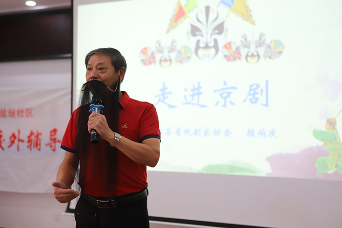 如东县社科普及志愿者、江苏省戏剧家协会会员、县剧协副主席颜伯庆,围绕“走进京剧”这一主题,对京剧的行当、脸谱、服饰、道具等逐一予以介绍,还适时运用道具对京剧动作及唱腔进行现场表演,让大家近距离感受中国国粹的博大精深和无穷魅力,从而进一步坚定社区居民的文化自觉和文化自信。