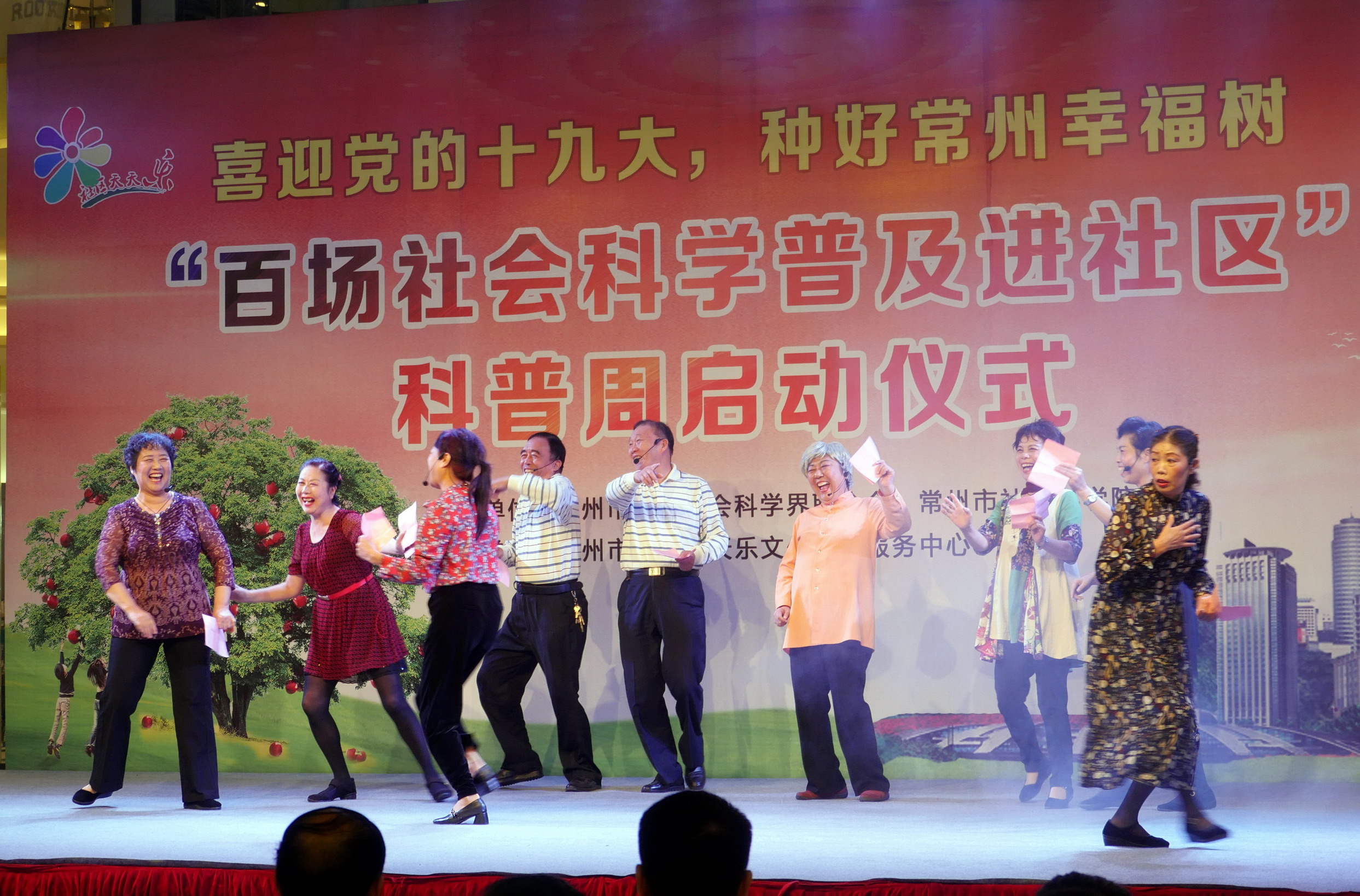 社科文艺晚会的举办拉开了百场社科知识普及进社区暨2017年社科普及周的帷幕。晚会所有节目都是社科类学会、社科普及基地编排选送。常州市民俗学会选送的舞蹈《梳篦雅韵》、常州市古代管理思想研究会选送的舞蹈《画里常州》、常州市家庭指导促进会选送的情景剧《封封家书传真情》、常州市社科普及基地选送演出的《新民乐女子组合联奏》、常州市博客文化研究会的独唱《我怎样去爱你》等节目,把社科知识融入百姓喜闻乐见的文艺节目之中,将社科与文艺结合,把原本看起来“高大上”的社科知识搬上舞台,把抽象不好懂的社科知识演出来、唱出来、跳出来,变过去我讲你听为我演你看,让社科普及更接地气,让社科知识在润物无声中为群众所接受。活动现场还穿插了精彩纷呈的社科知识互动问答,近千名社区居民争相抢答。