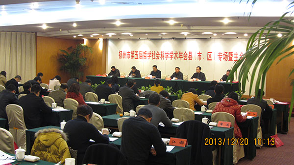 12月20日,扬州市第五届哲学社会科学学术年会县(市、区)专场暨主会场在仪征市召开。省社科联党组副书记、副主席汪兴国出席会议并致辞,扬州市委常委、宣传部长卢桂平到会讲话,扬州市社科联和仪征市有关领导以及来自邗江、宝应、江都、广陵、高邮、仪征等县(市、区)的社科界代表共约100余人参加了会议。