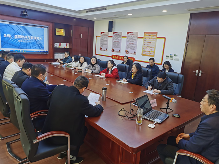 张新科书记从高校社科研究与教学管理现状谈起,解读了中央、省委关于高校思政教育最新文件精神,并围绕“人才培养体系”“思政工作体系”“金课如何与课程思政结合”“管理育人之道”等方面,阐释了应用型人才培养与金课建设、思政课程、课程专业文化之间的内涵及相互关系,提出应进一步做优课程思政,通过深挖专业课程的思想政治元素,打造特色鲜明的专业文化、培塑专业之魂。